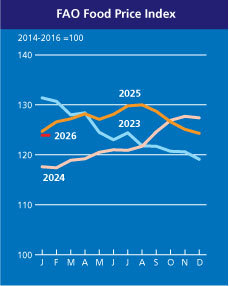 유엔 식량농업기구(FAO)는 2026년 1월 발표에서 식품가격지수가 5개월 연속 하락했다고 밝혔지만, 여전히 팬데믹 이전 평균을 웃도는 수준이다. 국제 식량안보 분석기관 ‘FEWS NET’도 올해 2월 전망에서 8월까지 최대 1억3천만 명이 긴급 식량지원이 필요할 수 있다고 경고했다. 식량 문제는 더 이상 개발도상국만의 위기가 아니라, 글로벌 경제 전반의 불안 요인이 되고 있다.