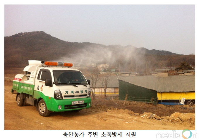 축산농가가 자체 방역을 적극적으로 하도록 1억7천4백만 원을 들여 소독약품 6,950kg을 조기에 구입·배부하도록 하고, 소, 돼지 농가에서 구제역 예방접종을 반드시 실시하도록 지도·홍보를 강화하고 있다.