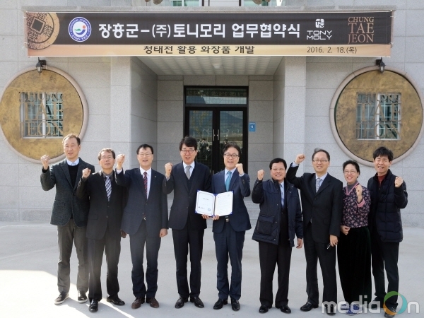 (미디어온) 장흥군은 지난 18일 청태전 홍보전시관에서 (주)토니모리와 청태전 활용 화장품 개발을 위한 업무협약을 체결했다고 밝혔다.