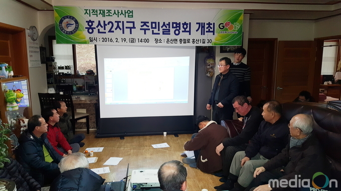 (미디어온) 부여군은 효율적인 토지 관리와 군민들의 재산권 보호를 위한 2016년도 지적재조사 사업의 일환으로 부여군 은산면 홍산2리 일원(212필지)에 대해 실시계획을 수립하고, 은산면에서 주민설명회를 개최했다고 22일 밝혔다.