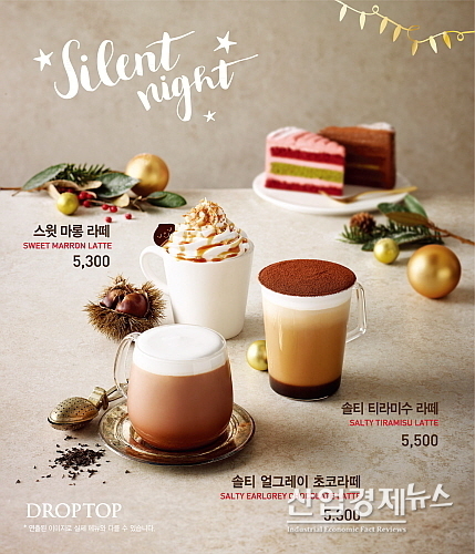 드롭탑도 12월 1일 시즌 음료 3종과 조각 케이크 7종을 선보였다.