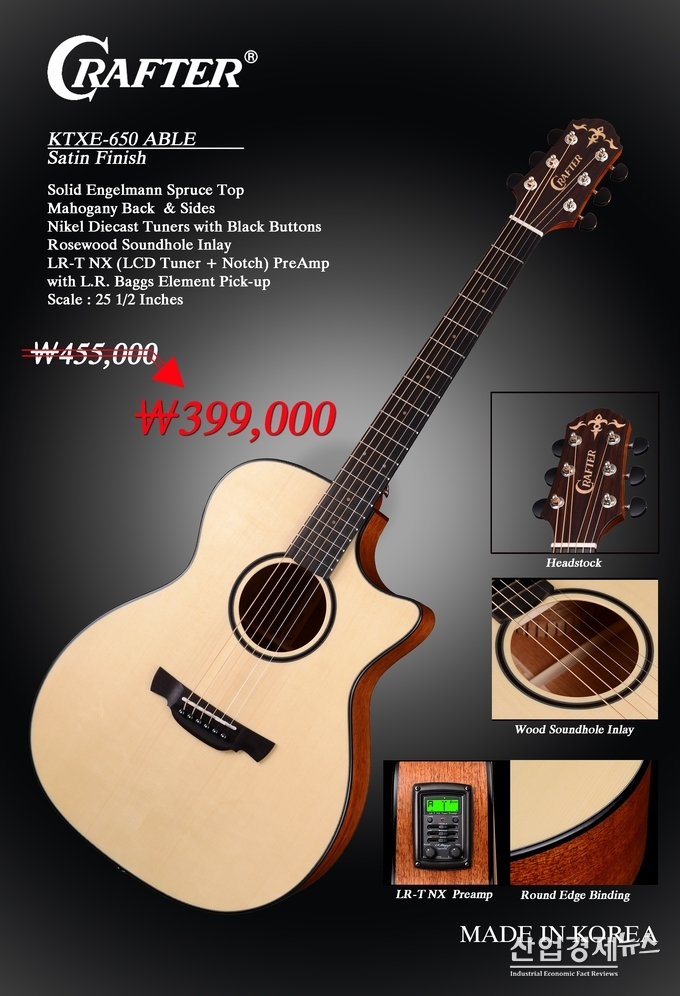 한편 해당 판매전은 전국 크래프터 기타 대리점에서 진행된다. 가격은 EQ/픽업이 없는 모델 35만9천원, EQ/픽업이 있는 모델은 39만9천원이다.