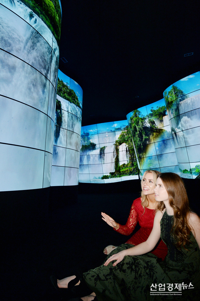 LG전자는 관람객들에게 생생한 현장감을 전달하기 위해 초고화질 카메라 14대를 동원했다. 북미, 남미 등에 위치한 △세계 최대 사암(砂岩) 협곡 ‘앤털로프캐니언(Antelope Canyon)’ △세계 최대 해안 빙하 지역의 ‘컬럼비아 빙원(Columbia Icefield)’ △세계 최대 규모 폭포 ‘이구아수 폭포(Iguazu Falls)’ 등 세계 곳곳을 다니며 영상을 촬영했다.