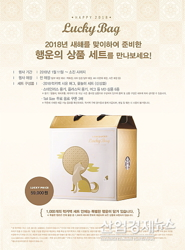 스타벅스커피 코리아는 2018년 무술년 새해를 맞아 전용 신상품, 텀블러, 머그, 무료 음료권 등 다양한 상품으로 구성한 럭키백 1만4000 세트를 지난 11일부터 전국 매장을 통해 선보였다.