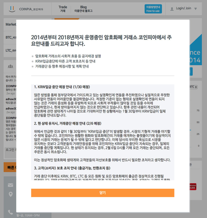 또, 속칭 ‘김치 프리미엄’이라 불리는 국내 가상화폐의 높은 가격은 암호화폐 입출금이 안되는 거래소에서 기인한다고 보는 시각도 있다며 코인피아의 거래 중단은 이러한 소비자 피해 문제를 막기 위한 조치라고 설명했다.