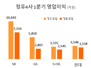 [엔트로피타임즈 문성희 기자] SK이노베이션, GS칼텍스, S-OIL, 현대오일뱅크 등 정유 4사가 2016, 2017년 사상최대 실적에 이어 지난 1분기에도 양호한 실적을 냈지만, 향후 실적에 대해서는 엇갈린 전망이 나오고 있다.