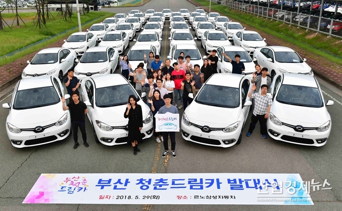 ‘부산청춘드림카’는 서부산권 중소기업의 신규 취업자들에게 3년간 총 500대의 SM3 Z.E.를 제공해 대중교통이 도심에 비해 부족한 서부산 산업단지의 청년 취업을 촉진하는 지역기여 사업이다.