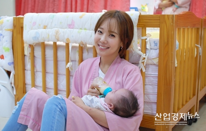 소유진은 29일 대한사회복지회를 방문해 퓨어락 분유 100캔과 후원금 500만원을 전달하고, 영아일시보호소에서 아기 돌봄 봉사활동을 진행했다.