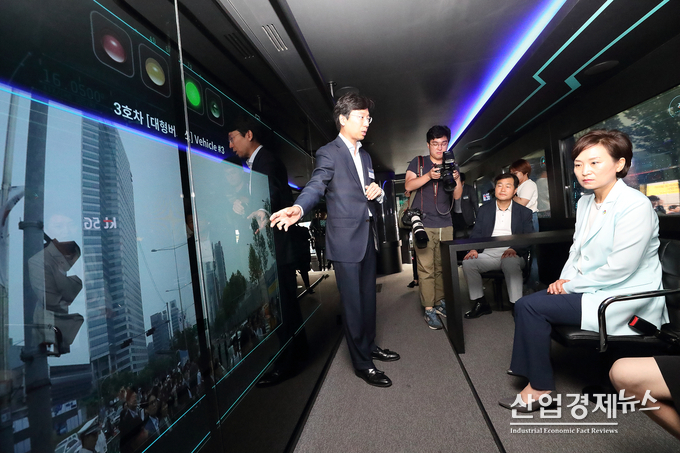 [엔트로피타임즈 강민구 기자] 국토교통부가 17일 오전 9시부터 11시까지 서울 강남구 영동대로에서 ‘자율주행차 국민체감 행사’를 진행해 김현미 국토부장관을 태우고 도심을 달렸다.