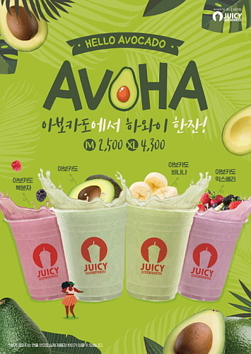 생과일주스 브랜드 쥬씨(JUICY)에서는 ‘숲속의 버터’ 등 다양한 별명을 가지고 있는 슈퍼푸드 인 아보카도’를 활용한 주스인 ‘아보하(AVOHA) 4종’을 선보였다.