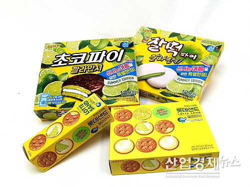 먼저 롯데제과(대표 민명기)는 여름을 맞아 초코파이, 찰떡파이, 롯데샌드에 깔라만시를 적용한 신제품 3종을 지난달 15일 선보였다.