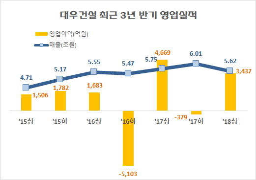 대우건설이 1일 발표한 '상반기 연결기준 경영실적 잠정집계'에 따르면 대우건설은 올 상반기 매출은 5조6167억원, 영업이익 3437억원 그리고 당기순이익은 1981억원을 기록했다.