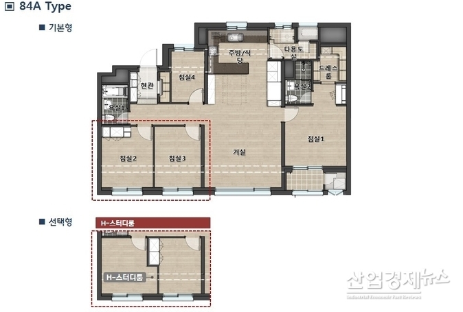 새로운 드레스룸은 부부침실 내 드레스룸에 수납장을 2배로 확장한 ‘H-드레스퀘어’이며, 스터디룸은 자녀방을 독서실 구조로 설계한 ‘H-스터디룸’ 등 2가지 평면이다. 고객들은 이 평면을 기호에 따라 선택할 수 있다.