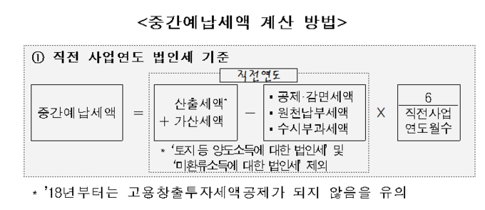중간예납 세액은 직전연도 납부한 세액이나 올해 상반기 실적을 기준으로 하며 국세청 홈페이지 '신고서 미리채움'서비스를 이용해 예납 금액을 확인할 수 있다.