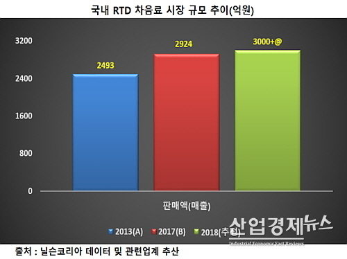 시장조사기관 닐슨에 따르면 국내 RTD(Ready To Drink) 차 음료 시장규모는 지난해 2924억원을 기록한 가운데 2013년 2493억원 대비 17.3% 신장됐다. 이는 4년간 연 평균 4.3% 씩 꾸준한 성장세로 올해는 3000억원대를 크게 넘어설 것으로 업계는 예상하고 있다.