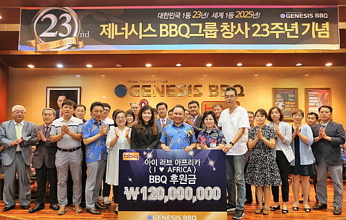 [엔트로피타임즈 민혜정 기자] BBQ치킨을 운영하는 국내 1세대 프랜차이즈 그룹 제너시스BBQ(회장 윤홍근)가 창사 23주년을 맞아, 지난 1일 산하 교육연구기관인 치킨대학에서 임직원과 패밀리(가맹점)들이 참석한 가운데 23주년 기념행사를 열고 주요 경영방침 발표 및 우수 임직원 표창을 실시했다.