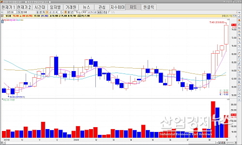 지난해 12월 4일 기록했던 6만6500원과 올 1월 30일 6만7100원, 8월 20일 70000, 9월 5일 7만1800원, 6일 74900원을 잇달아 돌파하더니 마침내 지난 7일 7만5100원이라는 52주 신고가를 갱신한 것.