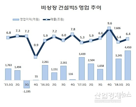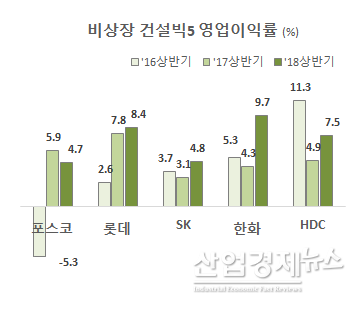 반면 영업이익이 크게 증가한 한화건설은 영업이익률도 9.7%로 크게 높아져 5개 회사 가운데 가장 높은 수익성을 보였다.
