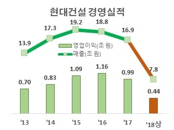하지만 2015년 이후 중동과 아프리카에서의 수주가 급격히 감소하면서 현대건설의 오랜 증가세가 감소세로 돌아섰다.