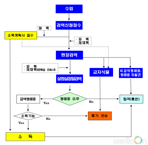 아울러, 수입자, 검역대행자, 관세사 등에 대해서는 제재목, 묘목 등의 수입 시는 가급적 수출국에서 해충(害蟲) 제거를 위한 약제 등 처리 후 반입하여 줄 것을 협조 요청하였다.