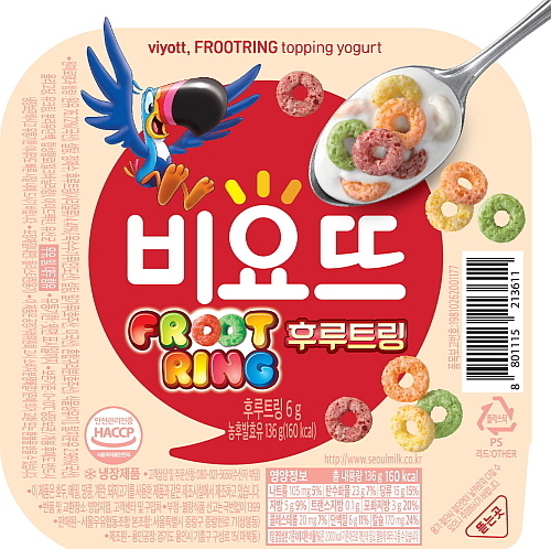 농심켈로그는 서울우유와 손을 잡고 ‘비요뜨 후루트링’을 지난 6일 선보이고, 상큼한 과일 맛 시리얼의 대명사인 후루트링 라인업 확대에 나섰다.