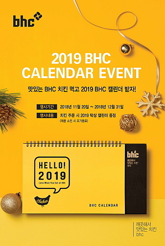 또한 20일부터 치킨을 주문하면 탁상 캘린더를 무료로 증정하는 ‘2019 bhc 캘린더 이벤트’를 물량 소진시까지 선착순 증정하는 이벤트를 진행한다.