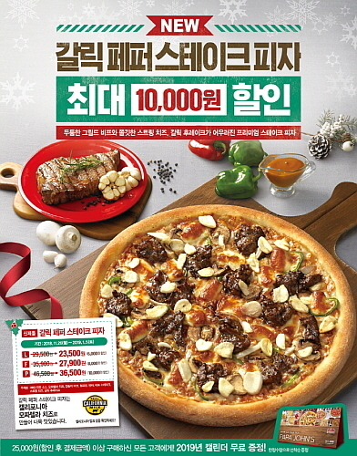 프리미엄 피자 브랜드 한국파파존스(주)(회장 서창우)는 신제품 갈릭 페퍼 스테이크 피자를 선보이고, 이를 기념, 이달 26일부터 내년 1월 5일까지 최대 1만원 할인 이벤트를 진행한다.