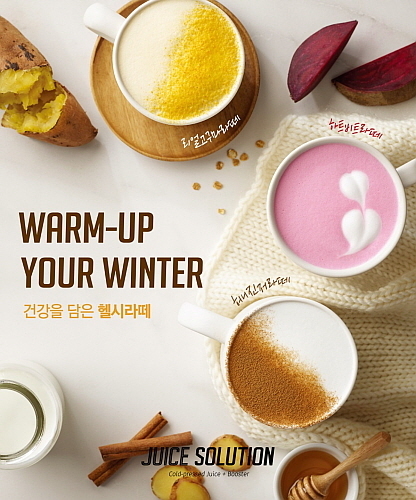CJ푸드빌이 운영하는 주스솔루션은 겨울 시즌을 맞아 뿌리채소를 활용해 맛과 영양소는 주스처럼 살리면서 추운 날씨에 따뜻하게 즐길 수 있는 ‘색다른 건강 라떼 3종’을 선보였다.