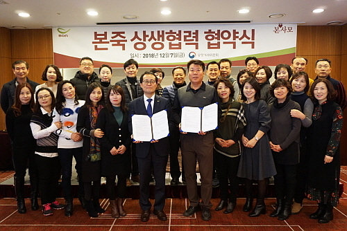 [엔트로피타임즈 민혜정 기자] 한식 프랜차이즈 기업 본아이에프는 7일 베스트 웨스턴 국도호텔에서 본아이에프 김명환 대표 및 임직원과 본사모 박동운 회장 등 가맹점주협의회 회원 30여 명이 참석한 가운데 ‘본사모(본(本)을 사랑하는 사람들의 모임)’와 상생 협력 협약을 체결했다고 이날 밝혔다.