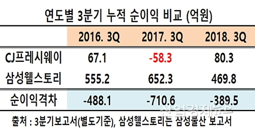 3Q 누적순익, ‘CJ 흑자전환 vs 삼성 28.0%↓’...수익성에선 삼성이 압도적 우위 견지