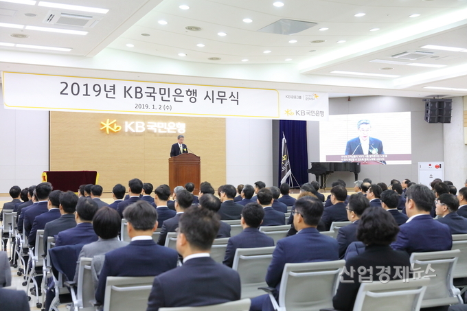 [엔트로피타임즈 김소산 기자] KB국민은행이 2일 오전 여의도본점 4층 강당에서 2019년 시무식을 개최하고 지속가능한 은행을 만들어 갈 것을 다짐했다.