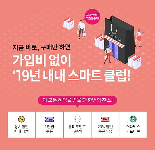 아울러 2019년부터 아리따움에서 새로 구매하는 고객은 새로 개편된 멤버십 ‘아리따움 스마트 클럽’에도 무료 가입할 수 있다. 특히, 1월 중 스마트 클럽에 가입하는 고객은 뷰티포인트, 할인쿠폰, 기프티콘 등 추가 혜택도 제공받을 수 있다.