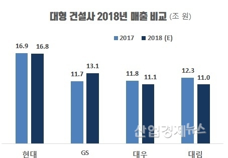해외사업을 위주로 하는 현대건설은 수주 감소 등으로 매출이 0.3% 감소했고, 대우건설, 대림산업도 각각 5.9%, 10.5% 외형이 줄어들었다. 최근 주택공급을 크게 늘린 GS건설만 12.2% 매출이 증가됐다.