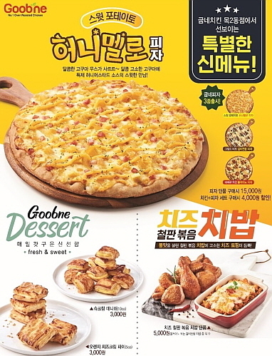 이번에 선보인 신메뉴는 ‘스윗포테이토허니멜로 피자’, ‘바베큐치킨볼케이노 피자’, ‘그릴드 비프 갈비천왕 피자’ 등 3종의 피자와 슈크림 데니쉬와 오렌지 크림치즈 파이 등 2종의 디저트, 1인 고객이 간편하게 즐길 수 있는 테이크아웃 전용 메뉴인 치즈 철판 볶음 치밥 세트이다.