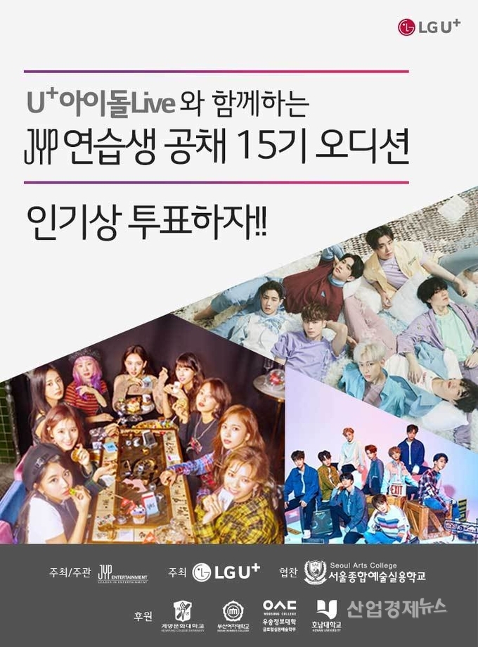LG유플러스는 오는 2월 15일(금) 24시까지 U+아이돌Live 이용자가 직접 JYP 연습생 공채 15기 오디션 본선 진출자 중 한 명에게 투표해 인기상을 선정하고, 추첨을 통해 300명에게 본선 관람 티켓(1인 2매)을 증정하는 이벤트를 진행한다.