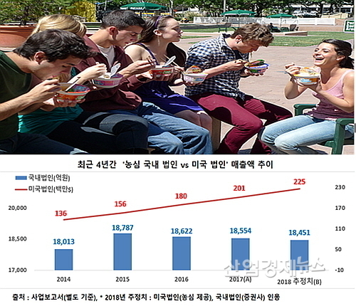 지난 2017년 6월 미국 최대 유통채널인 월마트의 4692개 전 점포에 신라면 입점을 완료시킨데 이어 코스트코, 크로거 등 대형 유통 채널에 진출해 판매가 늘어났고, 또한 美의회와 국방부 등 정부기관 매점 진출과 다양한 홍보·마케팅 전략이 성장세에 날개를 달았다는 설명이다.