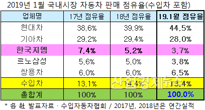결국, 올 1월 판매량(5053대)은 2017년 월평균판매량에 비해 반 토막이 났고, 점유율도 3.7%까지 폭락하는 부진을 이어갔다.