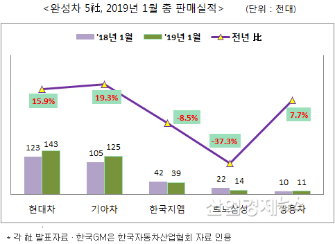하지만, 르노삼성과 한국지엠은 각각 –37.3%, -8.5% 기록하며 우울한 1월로 마감했다.