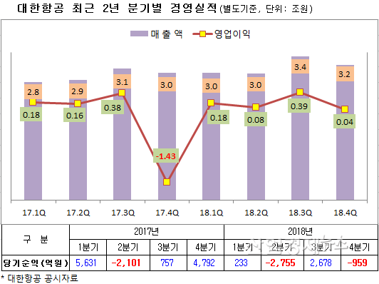 하지만, 외형성장에도 불구하고 손익에서는, 유류비 증가와 외화환산손실 확대에 따라, 2017년 9079억원 흑자에서 지난해에는 803억원의 당기순손실이 발생, 적자로 돌아섰다.