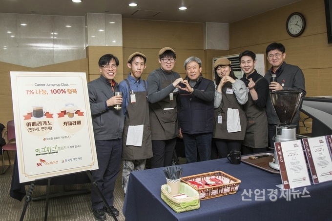 발달장애인 바리스타들은 SK이노베이션 구성원들에게 감사한 마음을 전하고자 사업장을 찾았다고 밝혔다. 이번 행사는 발달장애 자립지원 프로그램 ‘커리어 점프업 클래스(Career Jump-up Class)’ 1기 수강생 6명이 준비했다. 커리어 점프업 클래스는 SK이노베이션 구성원들이 기본급의 1%를 기부해 조성한 ‘1% 행복나눔’ 기금으로 운영된다.