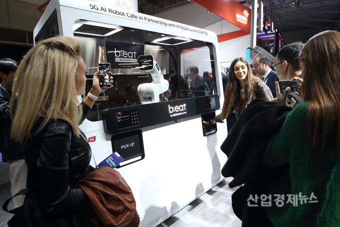 KT는 이밖에도 GSMA 공동관 이노베이션 시티에서 인공지능 로봇카페 '비트2E'를 선보이고 관람객들에게 직접 커피를 제공했다.