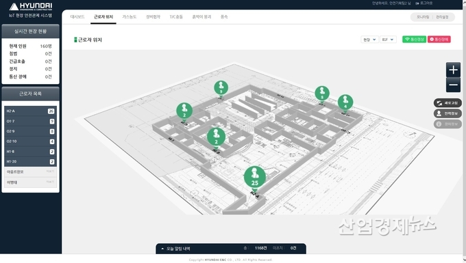 이 시스템에는 근로자 위치 뿐만 아니라 장비협착방지, 타워크레인 충돌방지, 가스농도감지, 풍속감지, 흙막이 가시설 붕괴방지 등 6종 기술이 내재돼 있어 현장에서 일어날 수 있는 다양한 사고를 사전에 진단하고 신속하게 조치할 수 있도록 했다.