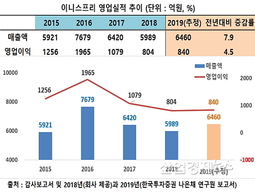 한편, 한국투자증권 나 연구원은 지난 2월 보고서에서 이니스프리가 올해 2018년 대비 7.9% 증가한 6460억 원의 매출과 영업이익도 약 4.5% 늘어난 840억 가량을 시현함으로써 최근 2년 연속 하락 추세를 마감할 것으로 예측한 바 있다.