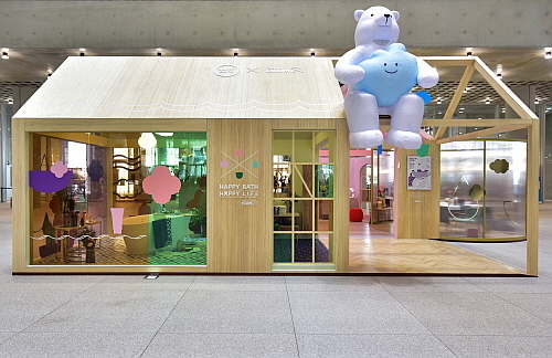 또한 쇼룸 지붕 맨 위에는 대림 디움을 상징하는 곰이 해피바스를 상징하는 버블을 안고 있는 조형물을 설치해 양사의 협업 의미를 강조했으며, 전시 공간에 해피바스 신제품 시암 아로마 향을 분사해 향기롭고 고급스러운 공간 분위기를 조성할 예정이다.