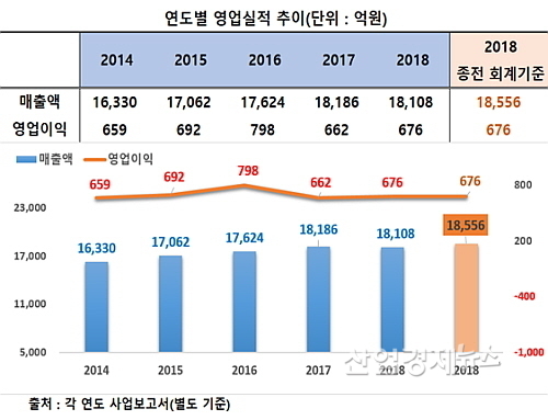 반면에 지난해 영업이익은 2017년 662억 대비 2.0% 늘어난 676억 원을 기록, 수익성이 소폭 개선된 성적표를 제출해 대조를 보였다.