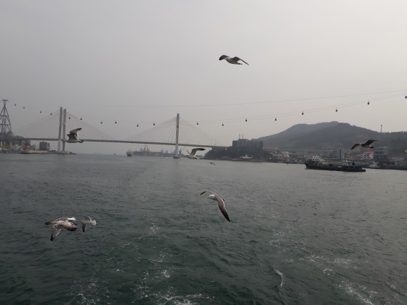 경쾌하고 아름다운 비행. 여수 앞바다 한려수도 해상공원의 갈매기들은 유람선 승객들이 던져주는 과자를 캐치하는 지점을 본능적으로 아는 것 같았다.