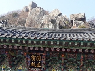 커다란 바위 두 개가 부딪혀 형성된 틈 사이를 통과하면 대웅전, 관음전 같은 절집이 몇 채 나오는데 도저히 공간이 없어보이는 산 꼭대기에 터를 잡은 가람 배치가 절묘했다. '첫 새벽'이라는 이름답게 우리나라 선불교의 시작을 알린 원효 대사가 659년 창건한 이 절은 수령이 오래 된 동백나무가 많고 일출과 바다 전경이 빼어나 일년 내내 관광객들의 발길이 그치지 않는다는 사실을 이날 눈으로 확인했다.