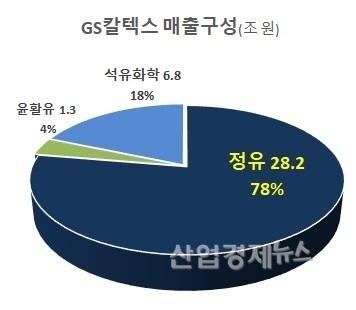 GS칼텍스의 지난해 연간 매출의 속내용을 살펴보면, 전체 36조원의 매출 가운데 정유사업이 28조원, 석유화학 7조원, 윤활유사업이 1조원이다.