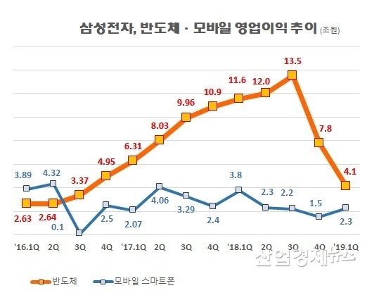 하지만 4분기 반도체 가격이 10% 빠지자 반도체 부문의 영업이익은 42% 감소했고, 올 1분기 반도체 가격이 23% 더 내려가자 반도체 부문의 영업이익이 47% 더 줄었다.