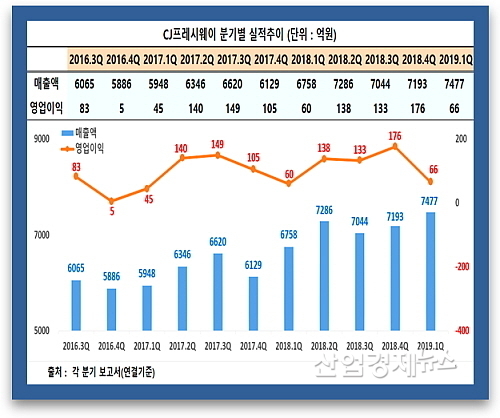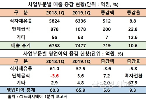 더욱이 소비심리 악화에 따른 국내 외식 경기 침체와 최저임금 인상에 따른 인건비 부담 등 척박한 영업환경에도 불구, 이 회사 3대 사업부가 서로 힘을 보태며 역대 분기 기준 최대 매출을 합작해내 빛을 더했다.